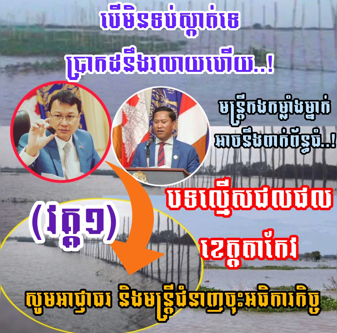 អង្គភាពសារព័ត៌មានរបស់យើងសូមជម្រាបដំណឹង និងស្នើសុំចំពោះរដ្ឋបាលខេត្តតាកែវ សូមចុះអាធិការកិច្ចចំពោះមន្ត្រីថ្នាក់ក្រោមដែលបានបើកដៃឲ្យអ្នកដែលពាក់ព័ន្ធនាំគ្នាប្រព្រឹត្តនូវការបំផ្លាញមច្ឆាដែលជាជីវៈចម្រុករបស់ប្រទេសជាតិកម្ពុជានៅក្នុងភូមិសាស្ត្រខាងលើនោះ ហើយធ្វើការស្រាវជ្រាវបុគ្គលដែលជាមន្ត្រីកងកម្លាំងម្នាក់ដែលនរណាក៏និយាយអំពីឈ្មោះនោះជារៀងរាល់ឆ្នាំផងដែរក្នុងការទប់ស្កាត់នៅរាល់អំពើពុករលួយជាប្រព័ន្ធផ្ដើមចេញពីក្រុមបក្សពួកទាំងអស់នោះដែលធ្វើឲ្យមានសាធារណៈជនទូទៅមានការរិះគន់យ៉ាងខ្លាំងក្លាចំពោះរដ្ឋបាលថ្នាក់ស្រុកខេត្តផងដែរ ខណៈដែលរដ្ឋបាលក្រោមការដឹកនាំរបស់ឯកឧត្តម វុី សំណាង ខិតខំព្យាយាមកសាងនៅការអភិវឌ្ឍន៍លើវិស័យជាច្រើន ក៏ប៉ុន្តែរឿងដាច់ដោយឡែកមួយនេះដែលអាចនាំឲ្យមានផលប៉ះពាល់ដល់កិច្ចការដឹកនាំរបស់ថ្នាក់ខេត្តជារឿងចាំបាច់បំផុត។