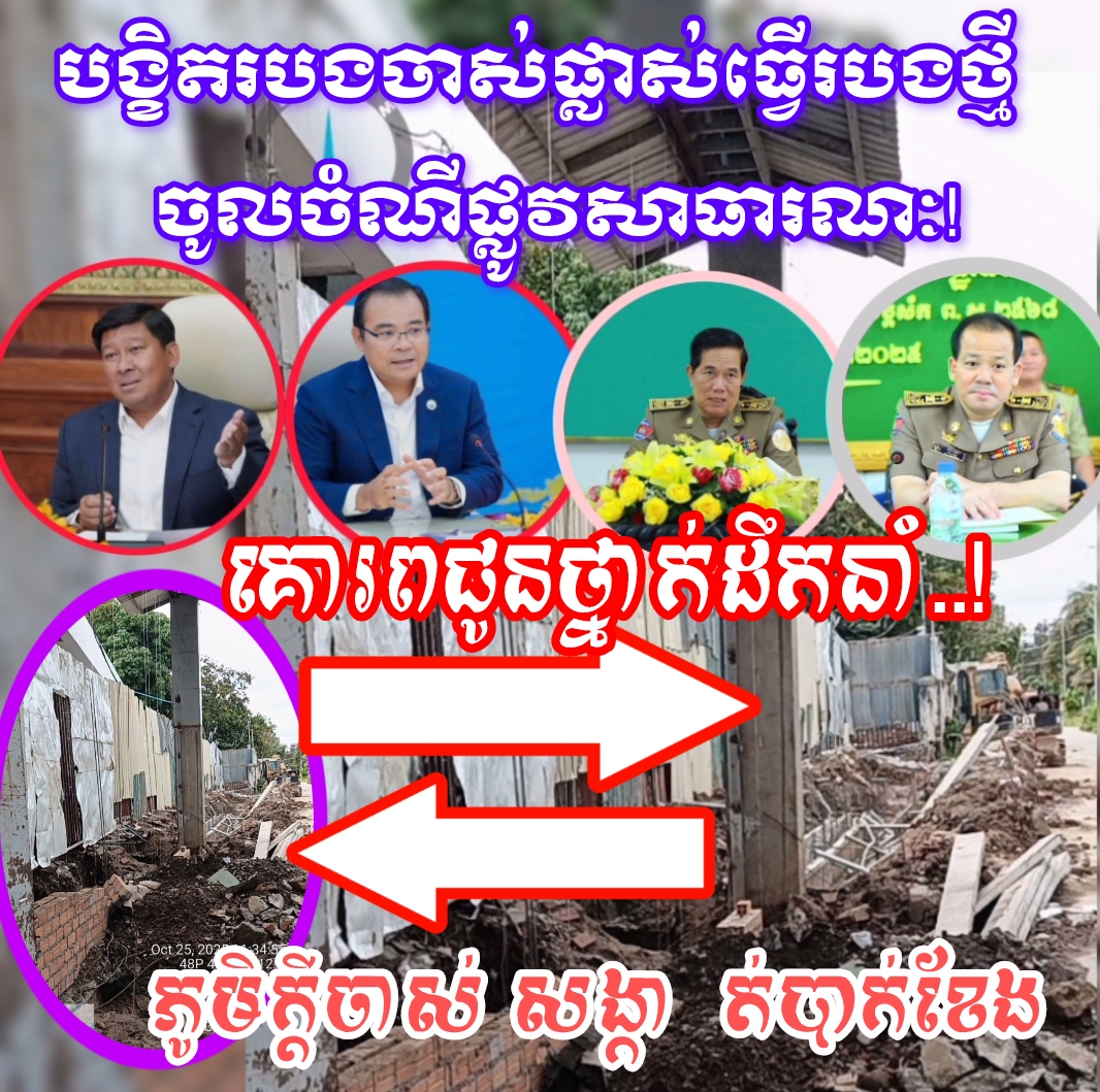 ការសាងសង់បង្ខិតរបងថ្មីផ្ទះភូមិគ្រឹះមួយដ៏ធំបានសង់ចូលចំណីផ្លូវសាធារណះរបស់រដ្ឋ និងសំណង់សាងសង់យ៉ាងរឹងមាំ ចូលច្រាំងទន្លេសាបនៅផ្នែកខាងក្រោយជាភាពស្រស់បំព្រង នៃទីកន្លែងដ៏ល្អប្រណិតមួយនេះចាត់ទុកថា សាកសមទៅនឹងម្ចាស់ទីតាំង តែមិនដឹងថា៖ មានច្បាប់កម្រិតណានោះទេ! ដែលហ៊ានអនុញ្ញាតឲ្យសាងសង់ សូមអាជ្ញាធរ និងមន្ត្រីជំនាញជ្រាបជាព័ត៌មាន!!!(វគ្គ១)