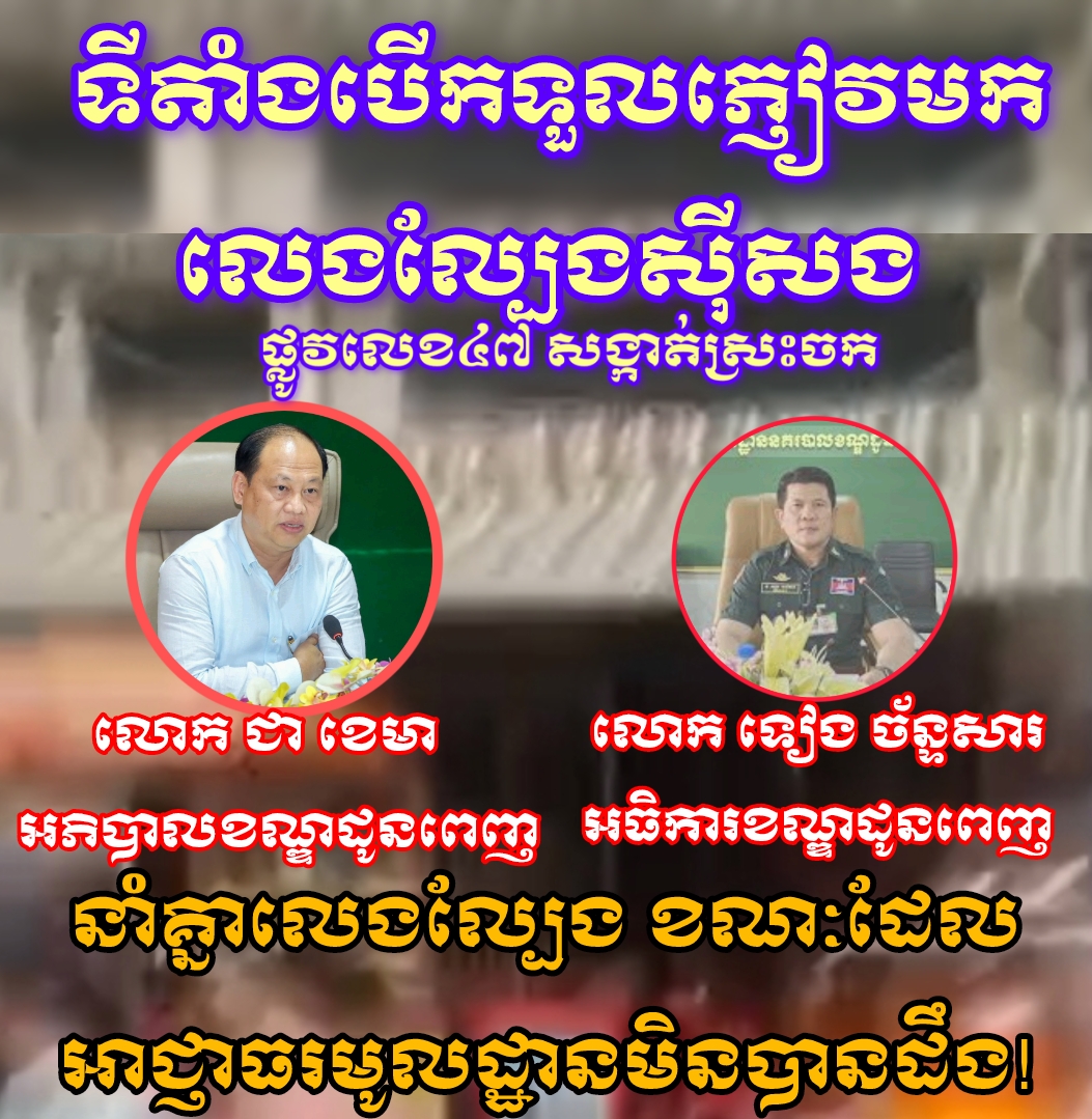ទីតាំងល្បែងស៊ីសងបើកលេងយ៉ាងគគ្រឹកគគ្រេងនៅផ្លូវ៤៧ សង្កាត់ស្រះចក ខណ្ឌដូនពេញ រីឯសមត្ថកិច្ចបែរជាមិនដឹងទៅវិញ !