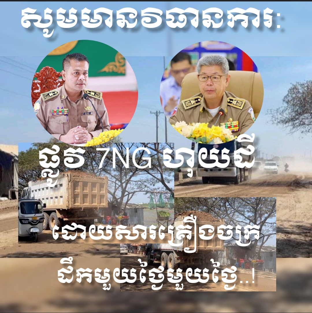 ពលរដ្ឋបានរអ៊ូរទាំចំពោះរថយន្តដឹកដីរបស់ក្រុមហ៊ុនមួយបានធ្វើសារាចរណ៍ទៅហើយនិងមកនៅលើផ្លូវ 7NG បណ្ដាលឱ្យប៉ះពាល់សុខមាលភាពការរស់នៅពលរដ្ឋ!