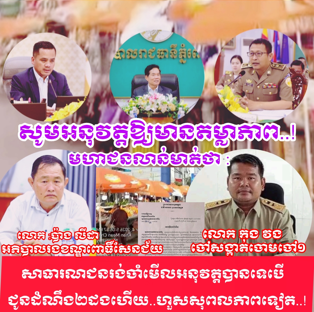 មហាជនរង់ចាំមើលថាតើការអនុវត្តគោលការណ៍របស់រដ្ឋបាលសង្កាត់ចោមចៅ១ ខណ្ឌពោធិ៍សែនជ័យ មានប្រសិទ្ធភាព និងមានតម្លាភាពដូចរដ្ឋបាលខណ្ឌអនុវត្តកន្លងមកដែរឬទេ ខណៈដែលសេចក្តីជូនដំណឹងបានចេញជាពីរលើករួចទៅហើយរហូតដល់ហួសសុពលភាពចំពោះអ្នករំលោភបំពានលើចំណីរផ្លូវសាធារណៈរបស់រដ្ឋ..(វគ្គ១)!